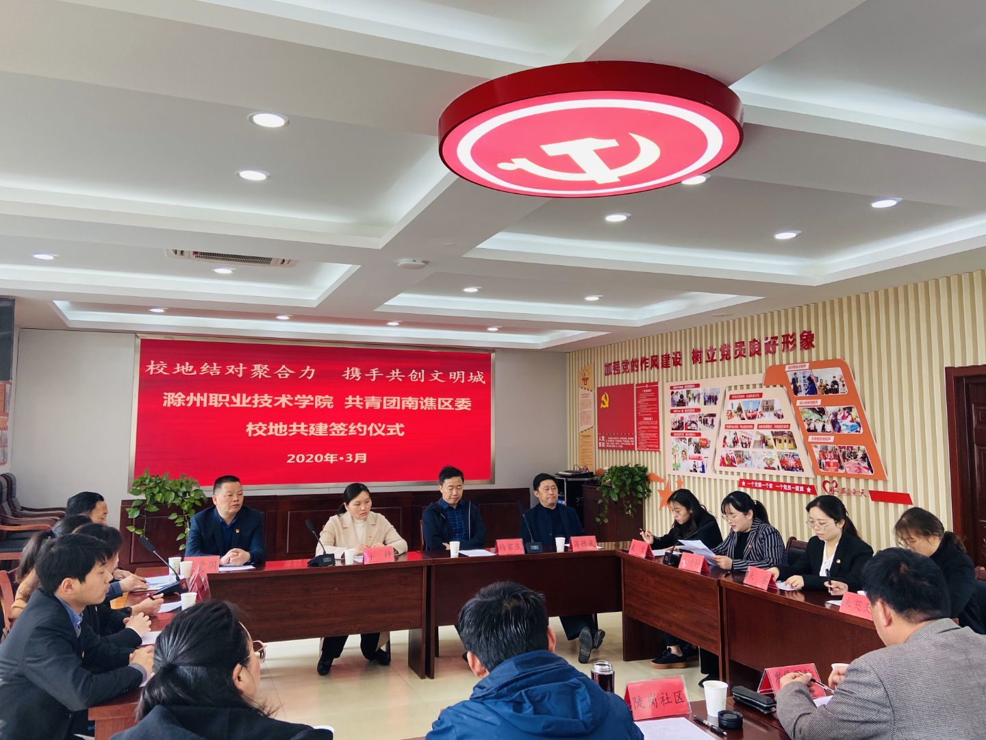 为进一步实现资源共享、优势互补,更好推广志愿服务文化,助力和参与我市全国文明城市的创建工作,3月25日,校团委与南谯区委校地共建签约仪式在龙蟠街道(筹)发能国际城社区举行。共建以“校地结对聚合力 携手共创文明城”为主题。
