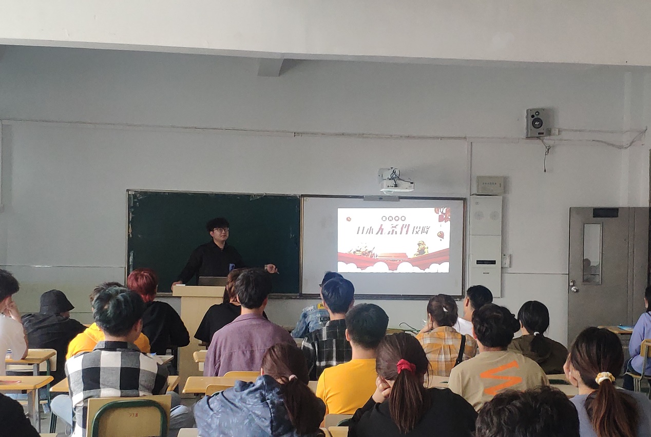 本次活动团支书钱召阳主持。活动中,主持人宣读了中国人民抗日战争暨世界反法西斯战争胜利70周年活动的背景及意义,并播放了抗日战争故事和爱国主义教育宣传片。随后同学们就抗战分享了一些故事。同学们纷纷表示要勿忘国耻、铭记历史,珍惜现在美好幸福的生活,继承革命优良传统,刻苦学习、勤奋进取,争做担当民族复兴大任的新时代合格大学生。