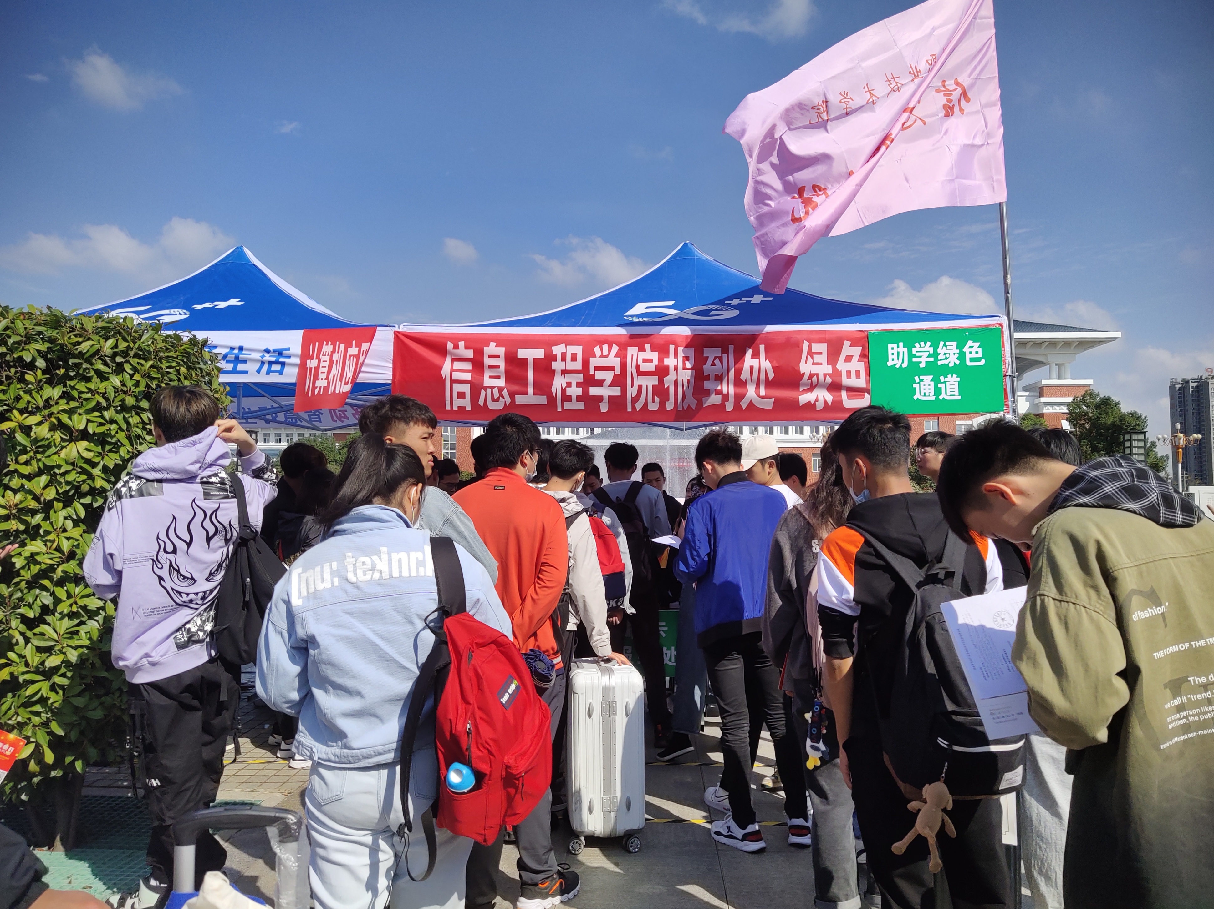 金秋送爽,丹桂飘香。10月12日,在这硕果累累的季节里,金沙威尼斯欢乐娱人城2020级迎新工作正式拉开帷幕,信息工程学院400多名新生错峰进入校园,有序拉开各项开学季活动。学院迎新氛围浓厚,志愿者热情高涨,大家都严阵以待迎接来自四面八方的莘莘学子。