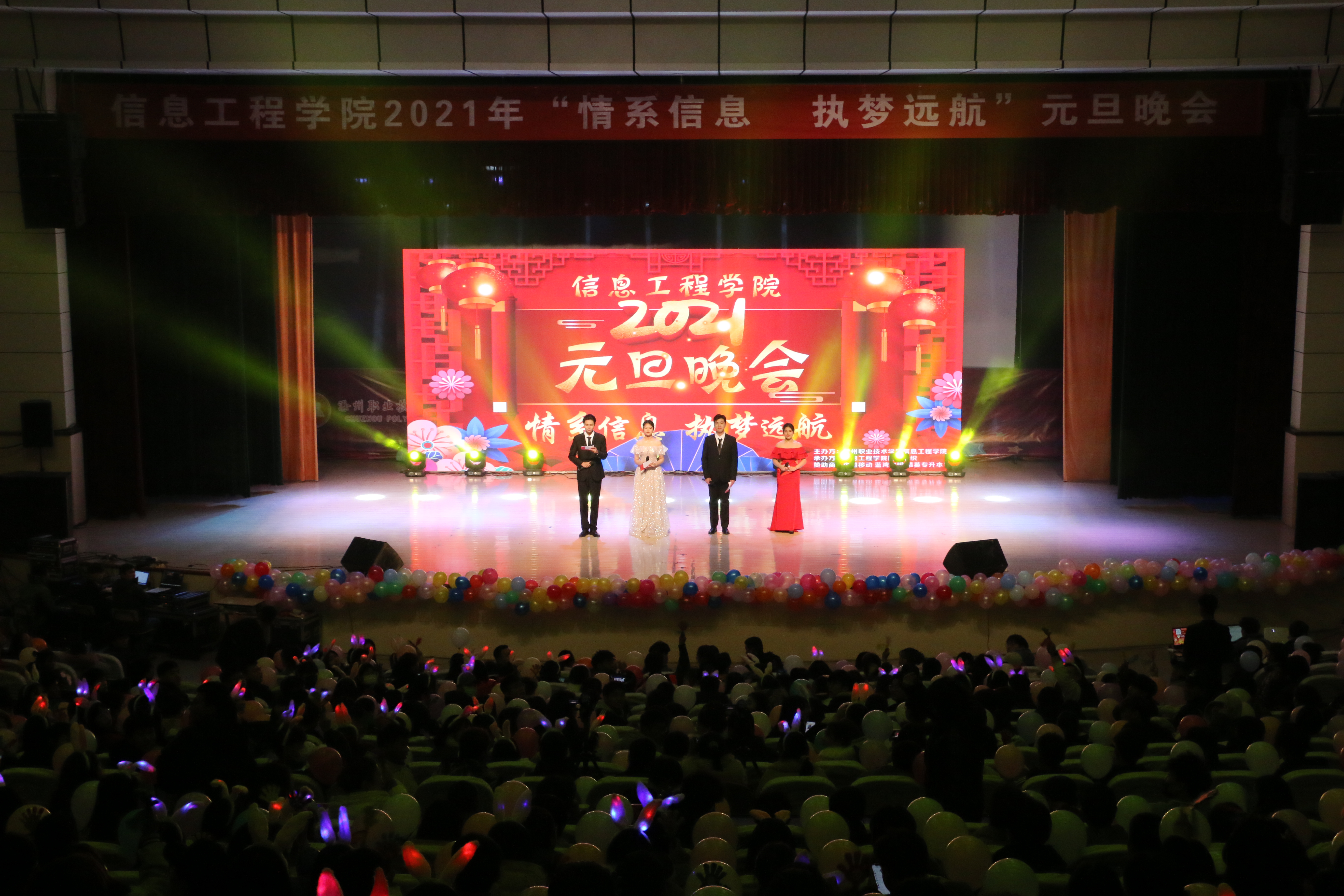 时间如白驹过隙,转眼间2021年元旦将至。为庆祝元旦佳节,也为丰富我院学生精神文化需求和校园文化生活、活跃学习氛围,给同学们一个真正展示自我风采和勇气的舞台。12月22日晚,信息工程学院“情系信息 执梦远航“主题元旦晚会在校大礼堂如期举行。我院党总支书记程洪斌、党总支副书记杨阳、团总支负责老师朱睿、辅导员朱芡芡等各位领导老师出席此次晚会。师生欢聚一堂观看晚会。