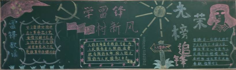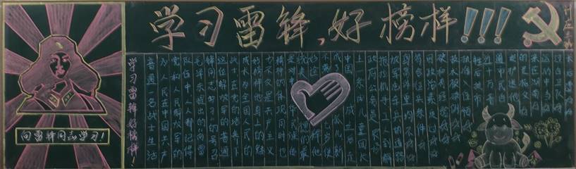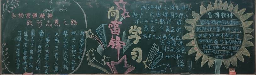 三月是雷锋月,为加深同学们对雷锋精神的认识和理解,营造浓厚的学雷锋氛围,丰富校园文化生活。信息工程学院在各班级开展了“学雷锋、树新风”主题黑板报评比活动。
