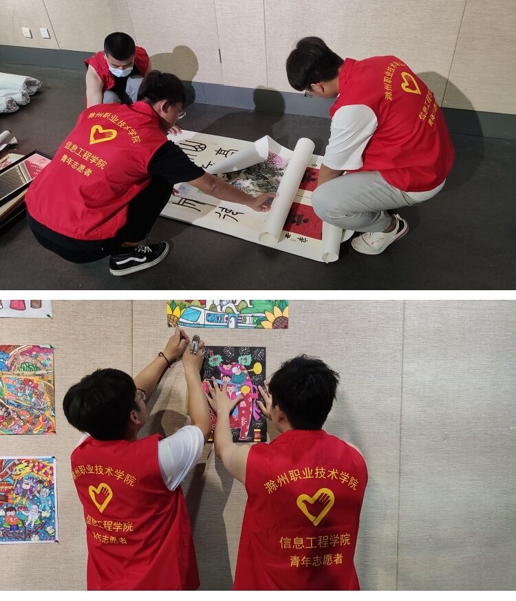 志愿服务展初心,实际行动记使命。为献礼建党百年,发扬志愿服务精神,5月29日和30日两天,信息工程学院学生志愿者队伍来到滁州市美术馆,开展了“党是阳光我是花”全市少年儿童书画展的志愿服务活动。志愿者用忙碌的身影诠释了“赠人玫瑰,手有余香”的志愿精神。