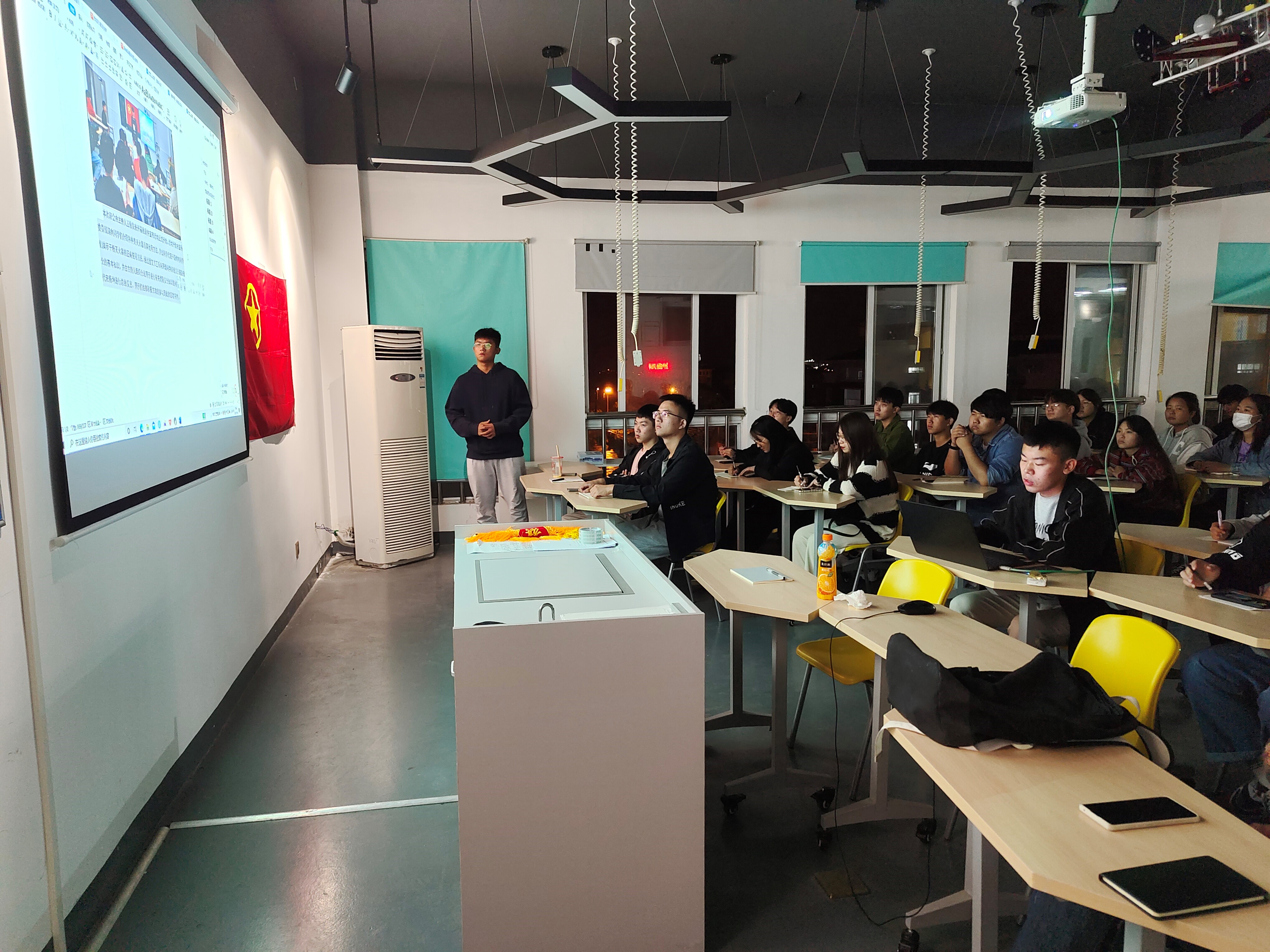 活动一开始,宣传部部长王博以优秀的新闻稿为范文对新闻稿撰写和活动照片拍摄进行了详细讲解。随后组织部部长朱祥雨用PPT和视频形式围绕团关系转入、新团员发展流程介绍、“智慧团建”系统介绍和“智慧团建”转入进行了详细讲解。之后组织部副部长朱仁杰补充说明了主题团日活动策划书的相关注意事项,如格式、内容以及措词等,并指导新生团干部具体的操作流程。最后,团总支副书记王乐给参加培训的团干部讲解了“三会两制一课”的具体内容,并规范了团支部手册的书写要求,旨在帮助团干部们更好的熟悉团总支和团支部的工作,有效地提高工作效率。