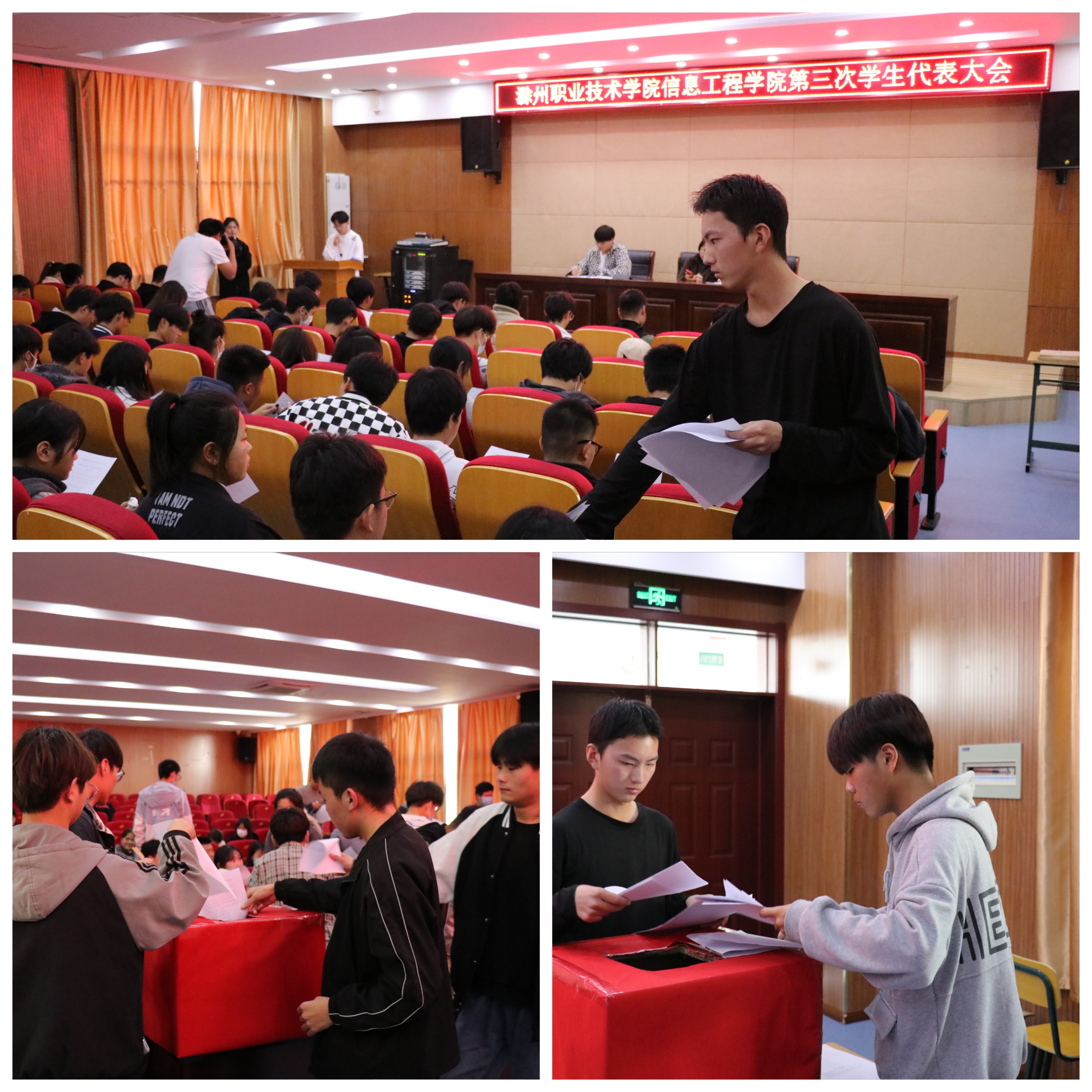 10月26日下午3点,我院在南阶205召开金沙威尼斯欢乐娱人城信息工程学院第三次学生代表大会,院党总支副书记杨阳、院团总支负责老师朱睿出席,学院各年级66名学生代表到会,办公室徐亚婷主持此次会议。
