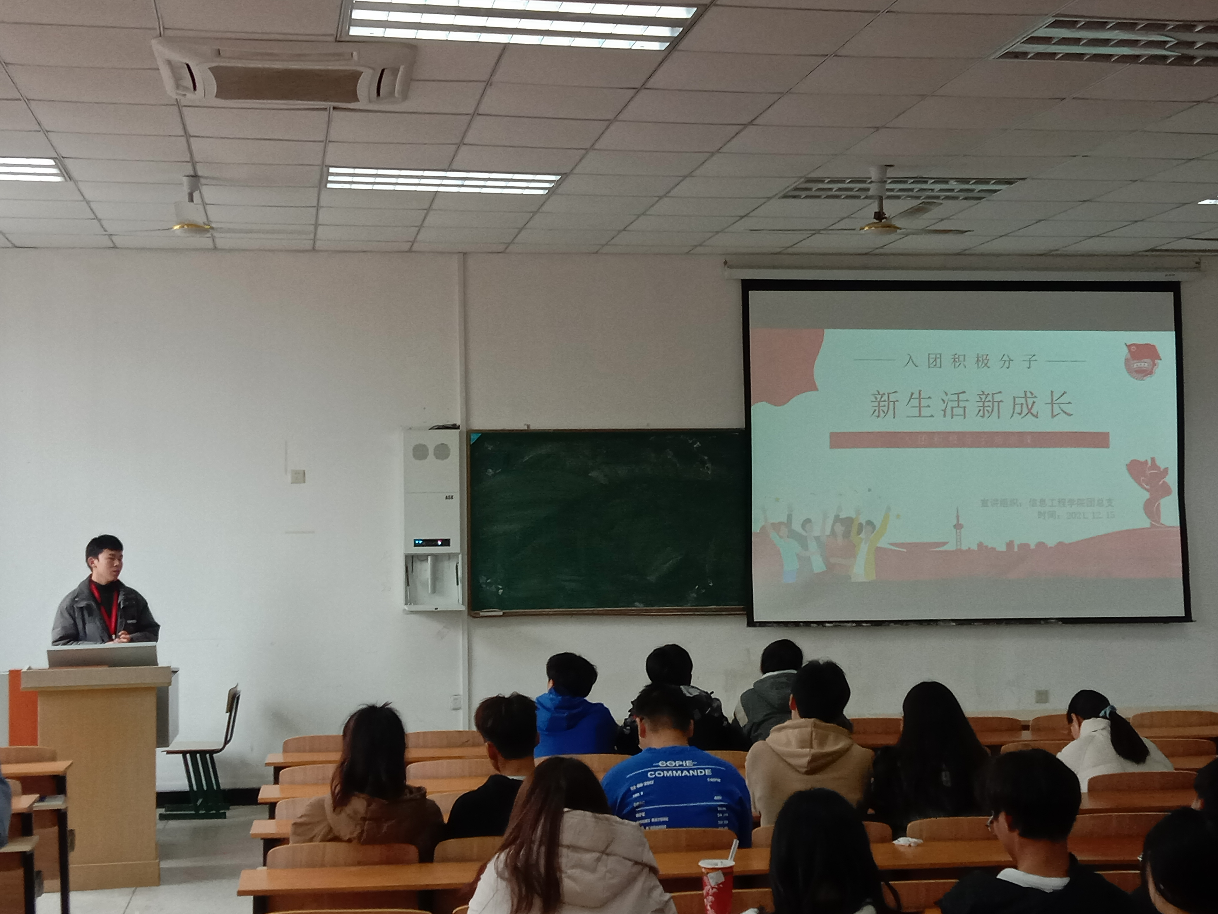 为进一步提升入团积极分子的理论基础和政治素养,创新形式,充分发挥朋辈力量,12月15日下午,信息工程学院团总支组织我院入团积极分子在南阶103教室开展了以“新生活,新成长”为主题的入团积极分子培训会,由团总支副书记王乐担任主讲人。