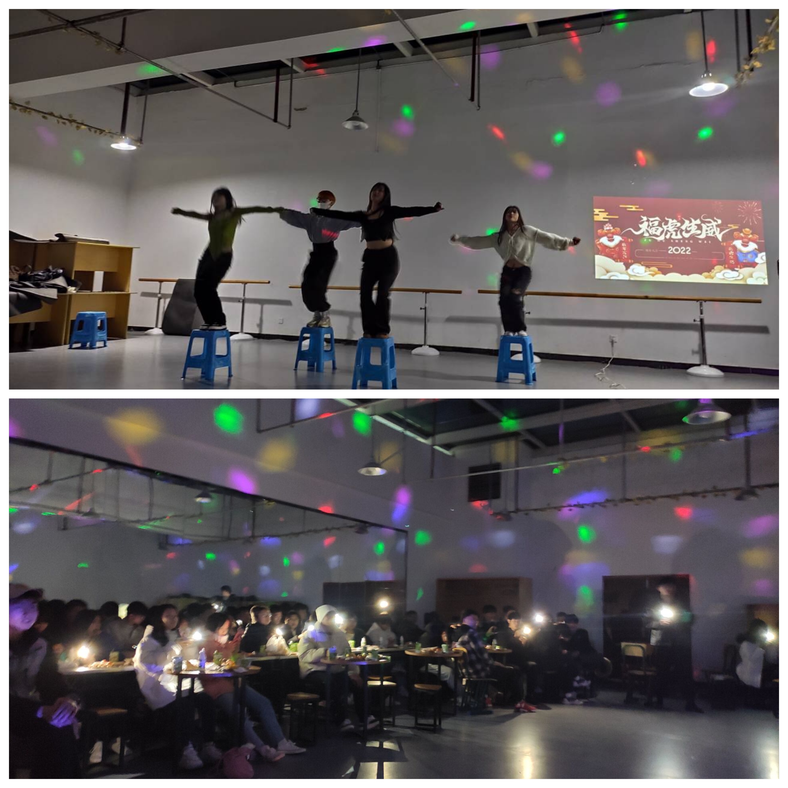 本次晚会由各班同学自主策划方案、自助装扮教室,自由表演才艺。晚会开始前,各班同学们利用下课时间完成了现场布置、安排节目、采买零食等任务,全程高效率、高质量,充分地展现了新时代青年的行动力与执行力。各活动场地也布置得异彩纷呈、极具特色,现场“年味”满满,处处洋溢着温馨、喜庆的气氛。