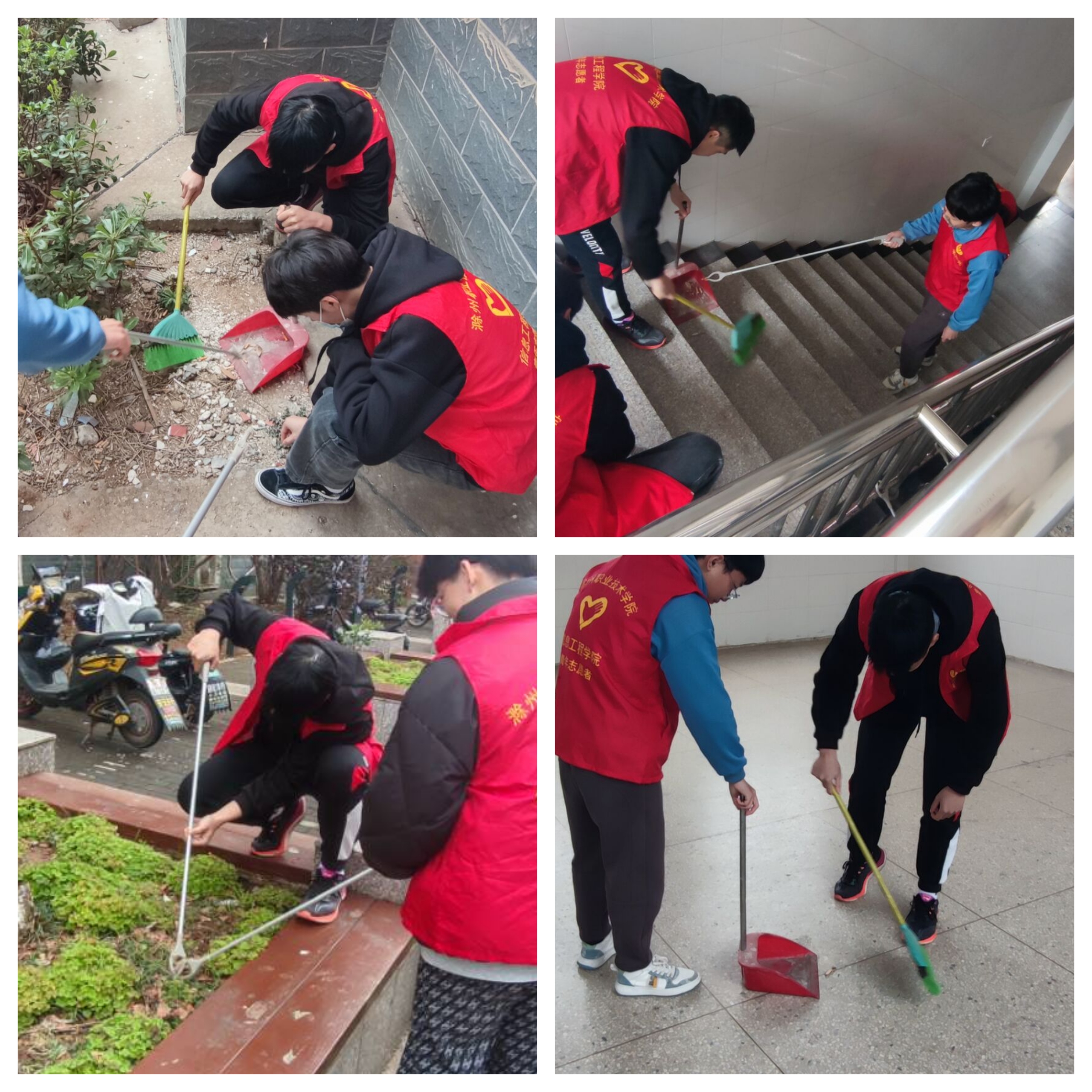 随后,根据辅导员的安排,同学们分好组,拿起清洁工具,沿着道路两侧、教学楼区域等仔细捡拾被丢在路边、草丛里、楼道间等地方的烟头。各小组分布在不同学校不同地方,个个都干劲十足,在他们身上充分展现了“不怕脏”、“不怕累”的志愿精神。