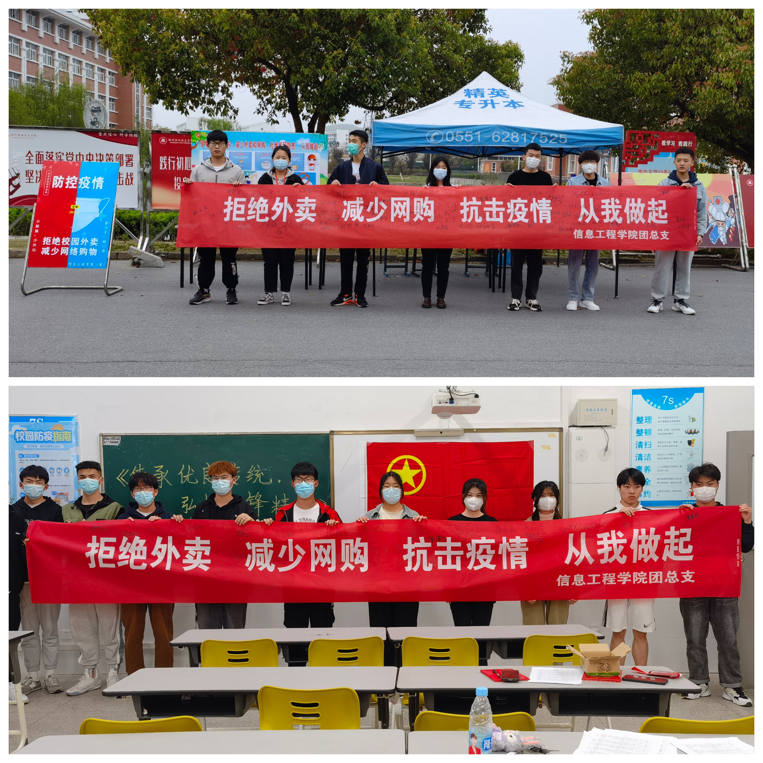 当前正处于疫情防控的关键时期,有效阻断疫情传播途径,切实加强同学们的防疫意识。3月30日至31日,信息工程学院团总支组织团学干部分别在食堂、超市和班级开展了“拒绝外卖 减少网购”主题签名活动,引导同学们拒绝外卖,健康饮食,减少网购。