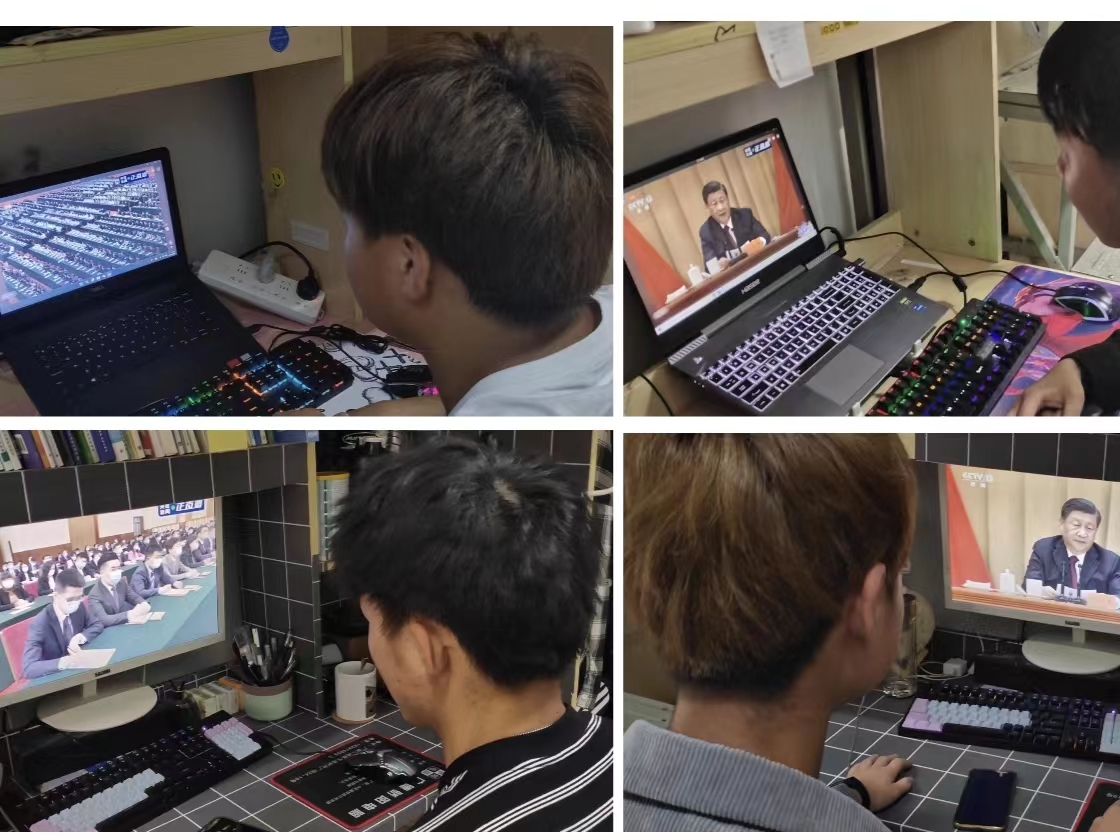 大会上,共青团中央书记处第一书记贺军科发言,中华全国总工会党组书记、副主席、书记处第一书记陈刚代表人民团体发言。习近平总书记发表了重要讲话,回顾了中国共产主义青年团跟党走、听党话的百年奋斗历程,为中国青年运动擘画了新的未来,为中国青年提出了奋进新时代的新要求、新期待。各团支部同学在宿舍或教室等地方借助手机、电脑等观看看大会的实况直播。