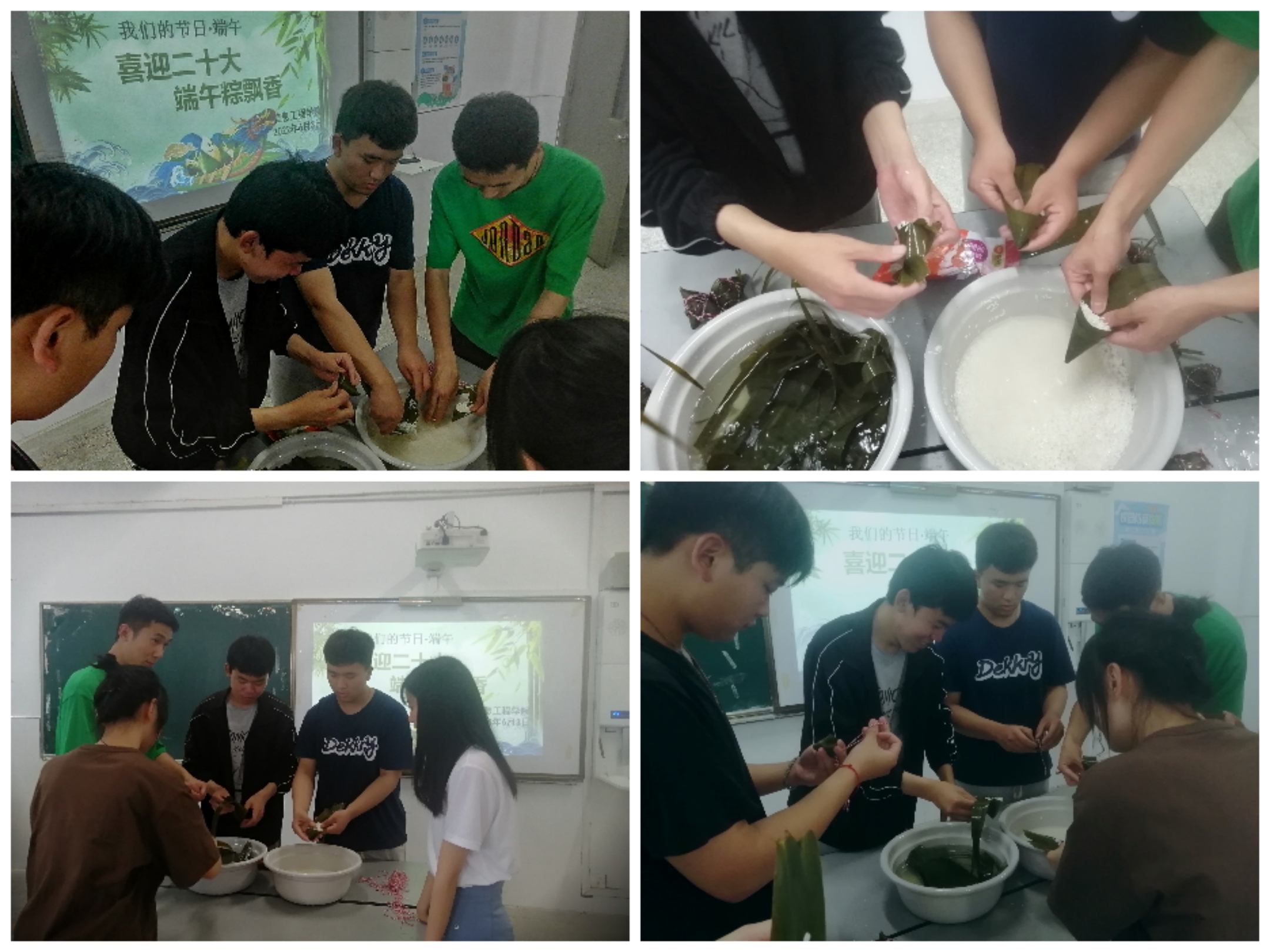 为大力弘扬中华优秀传统文化,积极培育和践行社会主义核心价值观,引导我院同学进一步了解传统节日,感受中华优秀传统文化魅力,以良好的精神面貌迎接党的二十大胜利召开,6月3日,信息工程学院组织各班同学在2504教室开展了“喜迎二十大,端午粽飘香”端午节主题活动。