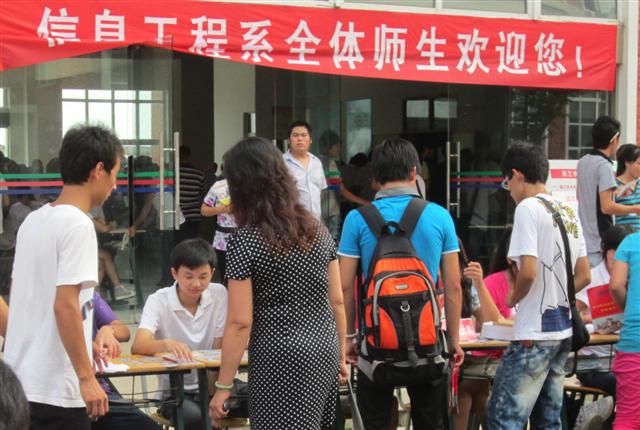 2011年9月13日,金沙威尼斯欢乐娱人城校园内彩旗飘飘喜气洋洋,信息工程系也迎来2011级莘莘学子入学报到。我系工作人员在卜锡滨主任和程洪斌书记的安排下,以热情的态度、周到的安排为11级新生献上了最优质的服务。