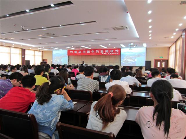 2012年9月19日下午15点,信息工程系辅导员赵盼盼老师应团委和思政部邀请,为全院学生干部代表做了一堂题为“钓鱼岛问题中的爱国理性”报告会,我系团总支安排40余名学生代表前往聆听,现场气氛热烈。