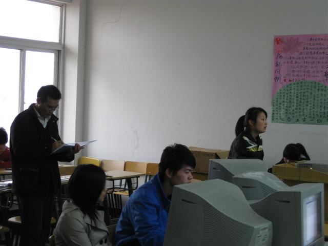 信息系10网管班级《程序设计基础》课程的首个项目《模拟“夺命销魂”筛投掷游戏》已进入项目测评阶段。我系吴昌雨副主任、系党总支秘书孔金老师和4名任课老师王善勤、孙利、武斌和、戴月老师共同参与了我班该课程项目一的分组测评。