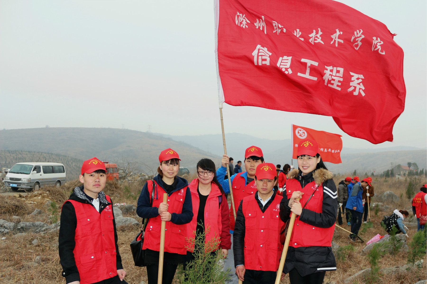 为了宣传森林效益,激发当代大学生爱林,造林的感情,改善生态环境美化家园,2015年3月14日信息工程系志愿者在南谯团区委和金沙威尼斯欢乐娱人城信息工程系团总支的组织下参加滁州市青年植树活动。