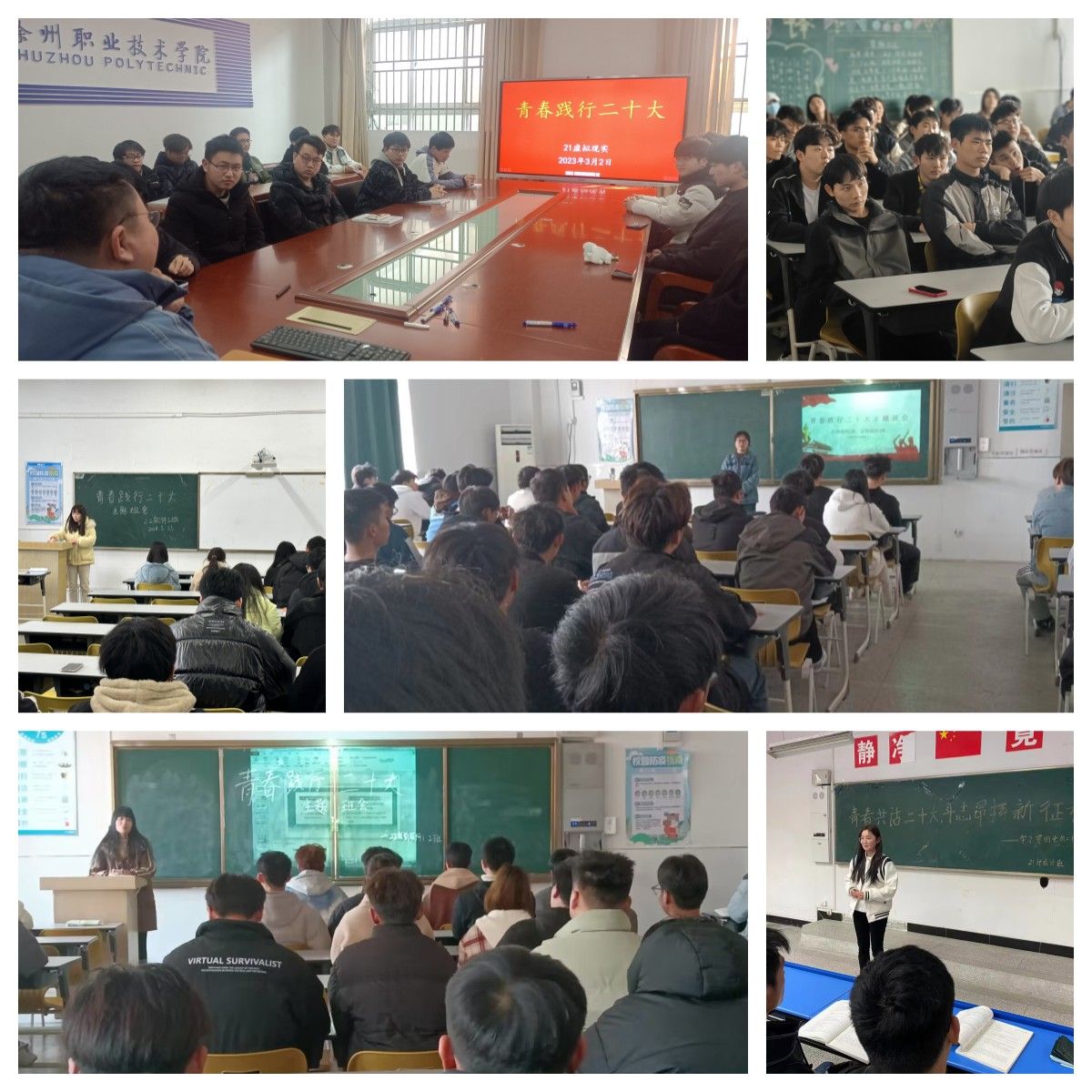 各班级根据自身专业特色与学生实际,引导学生树立坚定理想,历练健全人格,做有理想、敢担当、能吃苦、肯奋斗的新时代好青年。同时号召学生加强体质锻炼,强化学风建设,共筑美好和谐校园,以美好的精神风貌,献礼党的二十大。