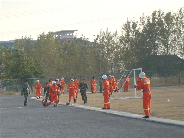 本次消防演练是滁州消防支队组织的一次消防竞赛活动,每个参赛的消防官兵都需要在操场400米距离内以尽可能少的时间完成徒手先后搬运两箱水(约30kg)、煤气罐和假人,消防官兵坚韧不拔的拼搏精神博得在场师生的阵阵掌声。
