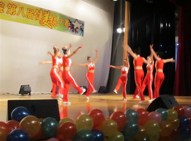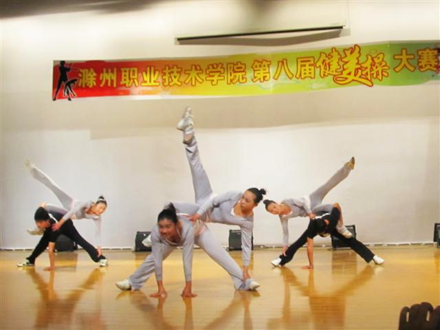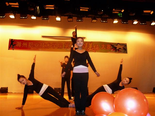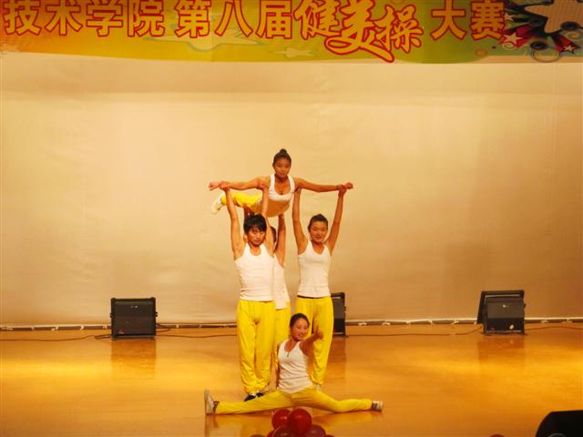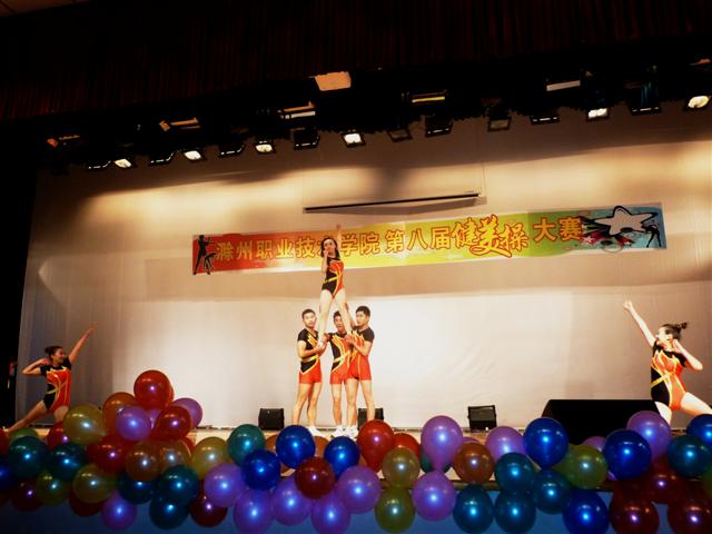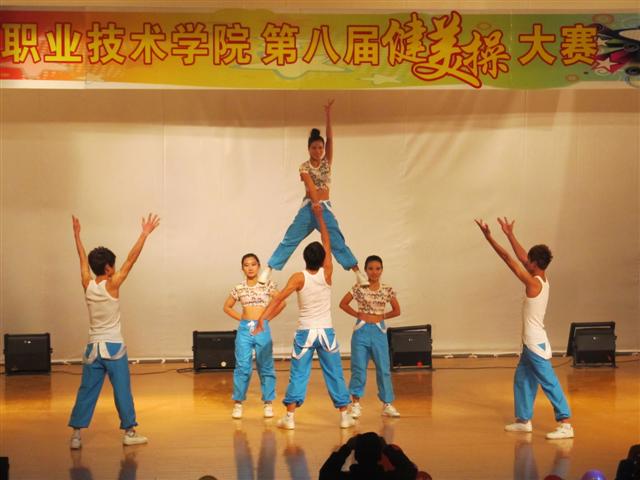 2012年12月12日下午,金沙威尼斯欢乐娱人城第八届健美操大赛在学院新报告厅拉开帷幕。本次大赛由信息工程系团总支承办,并得到了团委和体育部的大力支持。院团委书记王蓓蓓、团委副书记刘杰、团委副书记程诚等9名嘉宾出席了本次大赛并担任评委。来自各系部的10支参赛队共60余名健美操运动员参加了角逐。最终,技师学院代表队技压群雄,一举夺得全场比赛的最高分。同时,院健美操队也为现场观众奉献了一场展现青春力量与美的精彩表演。