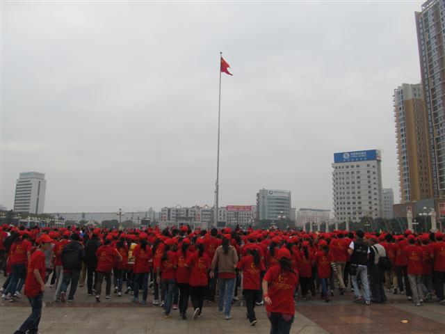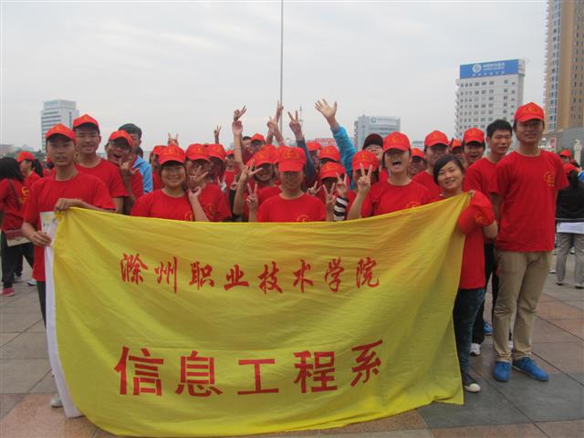备受关注的“2012年滁州首届万人健康跑开幕式”于10月13日上午9时在人民广场隆重举行。信息工程系精心组织团总支书记和辅导员带队300余名同学助力万人跑活动,其中135名同学担任志愿者,160名同学参加了长跑活动,另外我系国旗护卫队的部分同学参与了广场升旗工作。