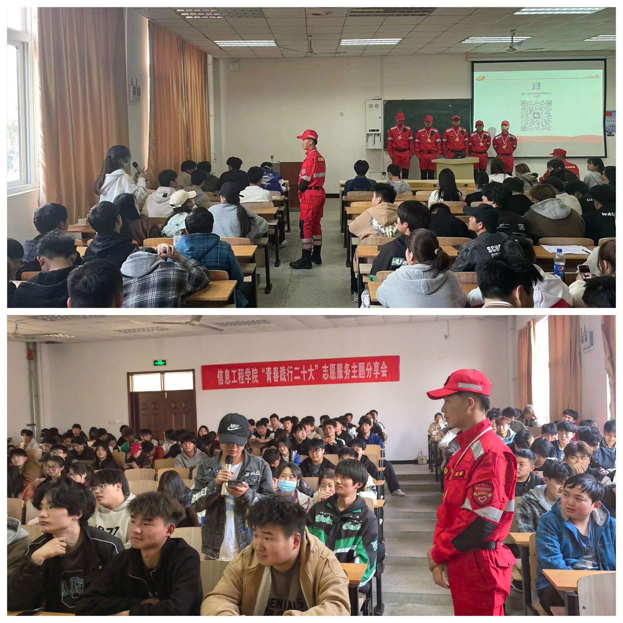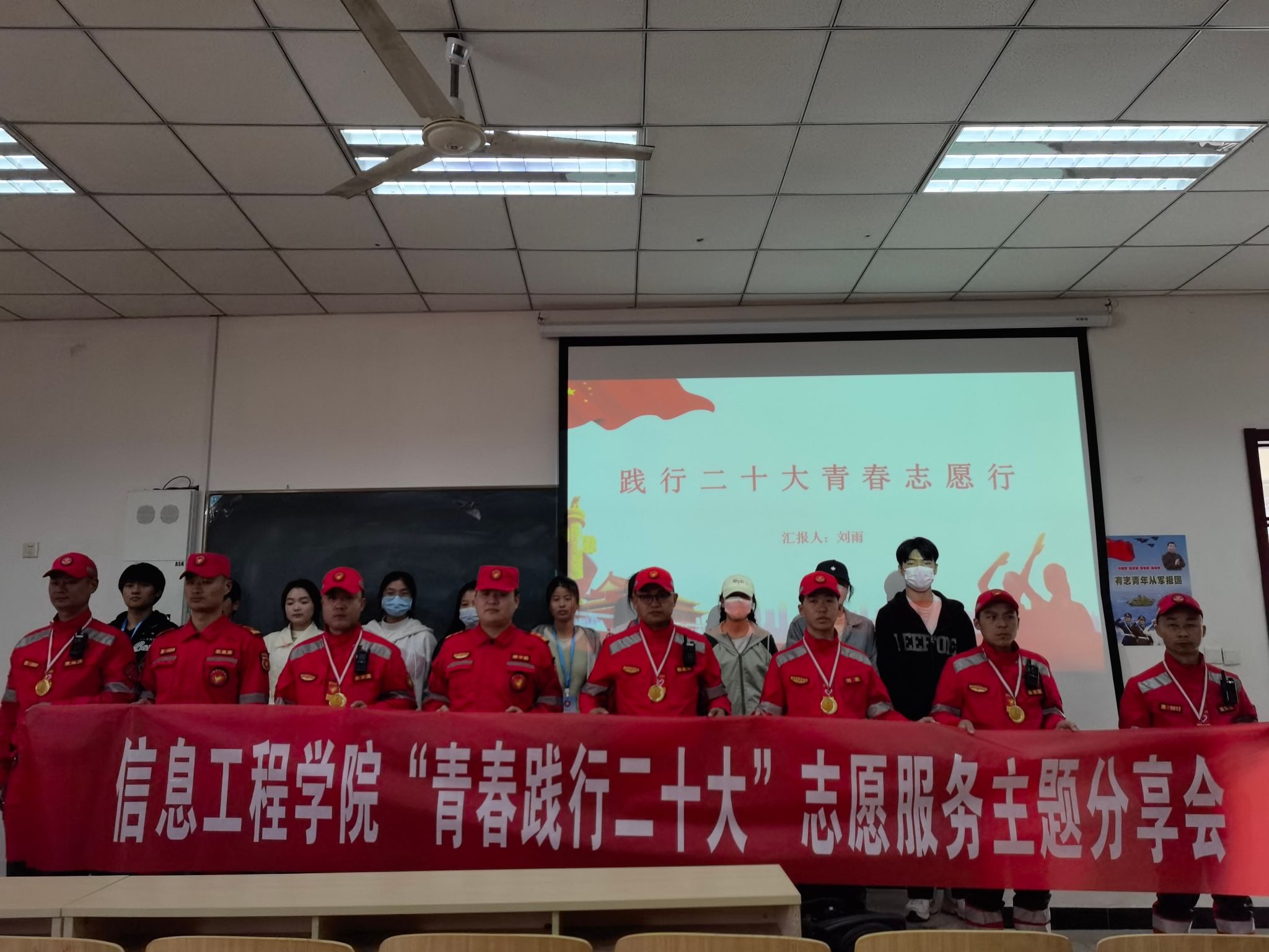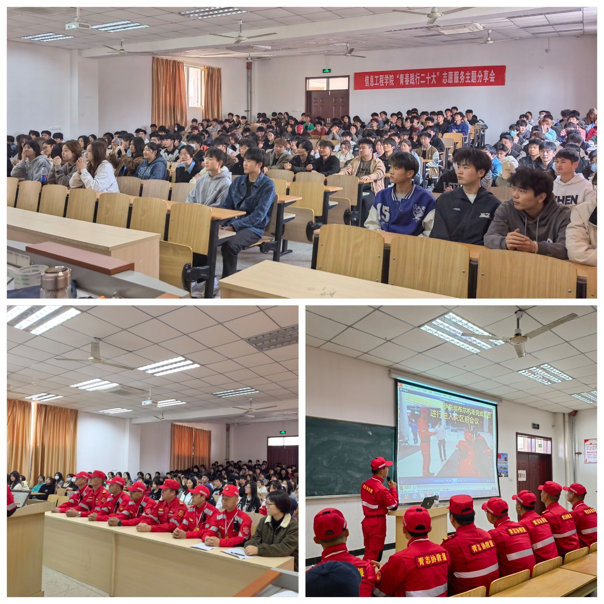 启事在教诲,成事在榜样。3月15日下午,信息工程学院在南阶105开展了两场“青春践行二十大”志愿服务主题分享会。本次分享会邀请我院优秀学生志愿者代表刘雨以及滁州青年志愿者协会青志协的8名成员。我院党总支副书记杨阳、院团总支书记朱睿及22级全体学生参加此次分享会。