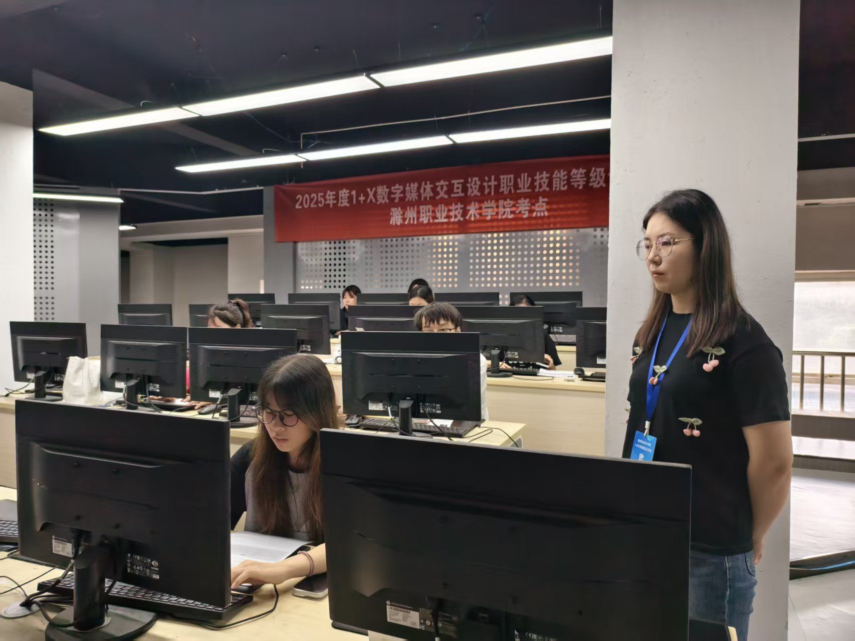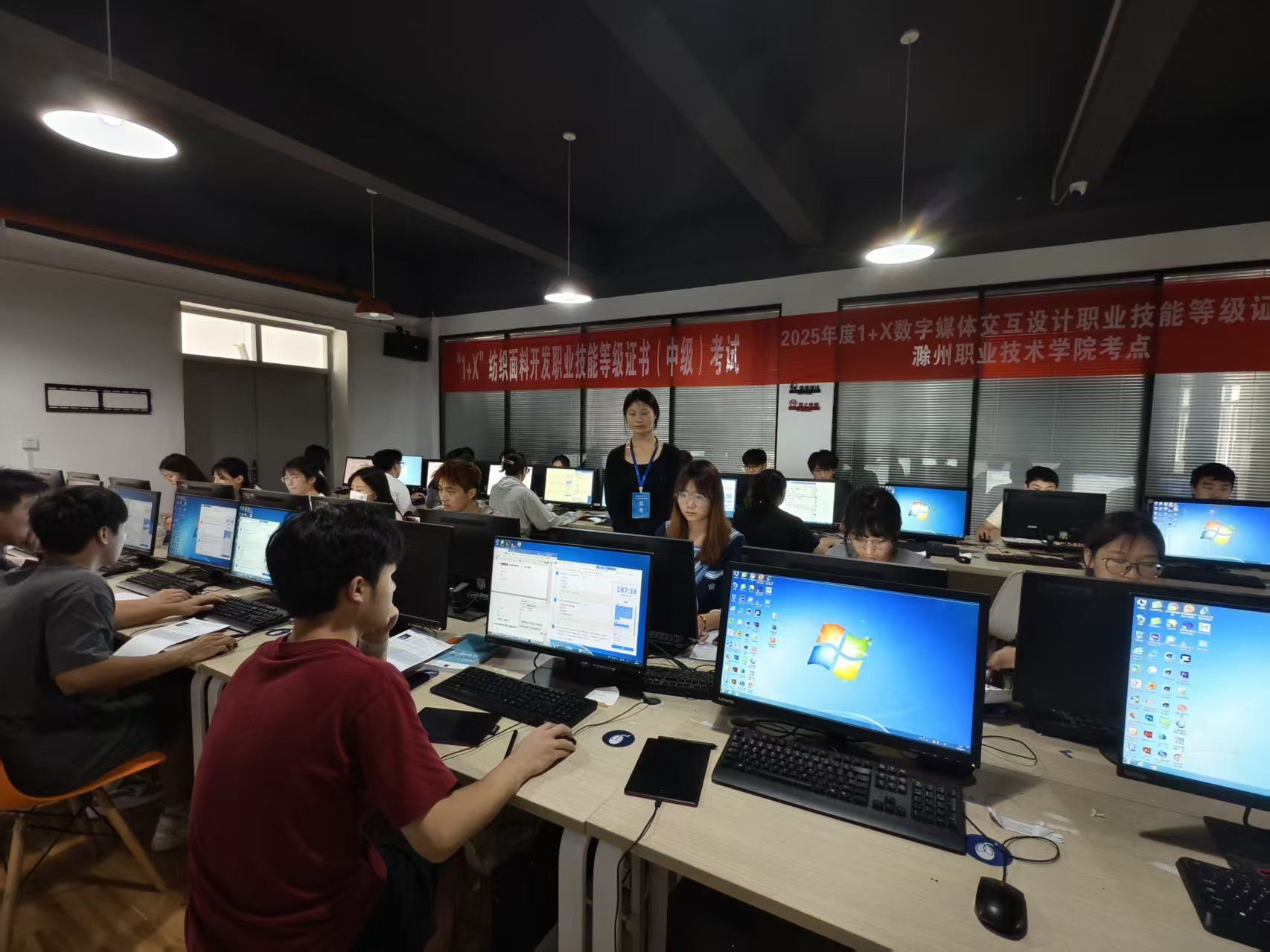 为深化职业教育改革,推进职业教育“1+X”证书制度试点工作,提升学生职业技能水平,6月7日、8日上午,传媒与设计学院数字媒体系顺利组织2023级、2024级传播与策划、动画制作技术两个专业共100名学生参加全国1+X数字媒体交互设计职业技能等级证书(中级)考试。