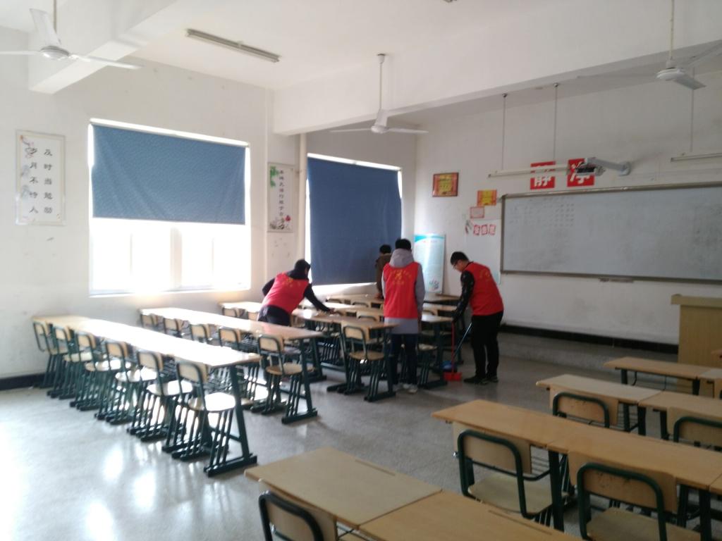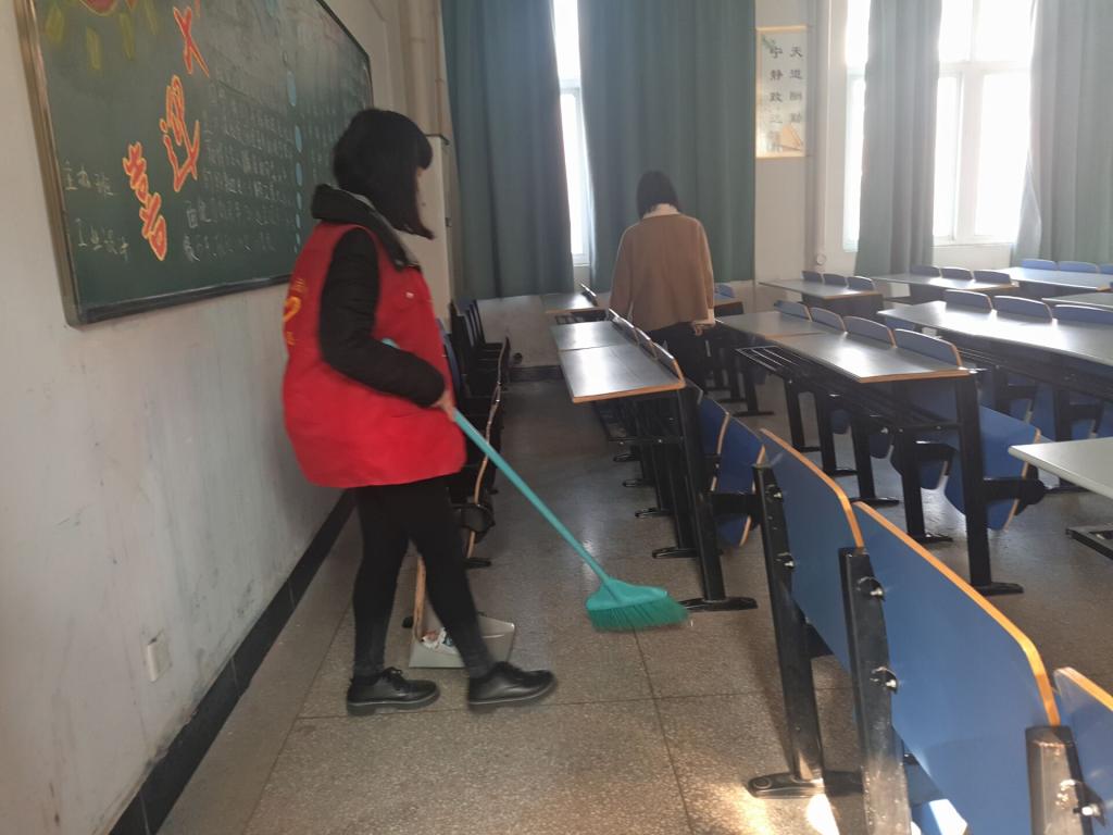 12 月5日中午传媒系在德馨楼,4号楼,北阶,南阶教室成功开展校园清洁活动。各部门干事都参加了本次志愿者活动。