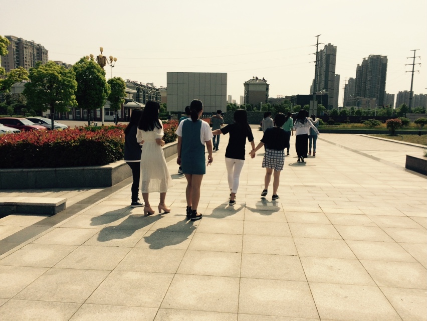 虽然都来学校半年多了,但是小部分人还是不熟悉学校里的环境,这样可以促进班级里同学们的交流。在路上大家就开始互相交流着,大家的心情也都比较舒缓。风轻云淡、阳光正暖的天气无疑让这次观摩校园风光增添了许多愉悦的乐符。这样一直青春活力的队伍也吸引了不少路人的眼光。