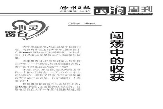 艺术设计系09级工业设计专业杨守成同学的习作《闯荡中的收获》近日被《滁州日报》“西涧周刊”版和《全椒日报》连续刊发。该生一直以来都很注重文字的锻炼,在指导老师的悉心教导之下,主要描绘了一位在校大学生到社会上求职的艰难历程。文章生动形象,思路清晰有序,该文对即将就业的大学生具有一定的启发作用。