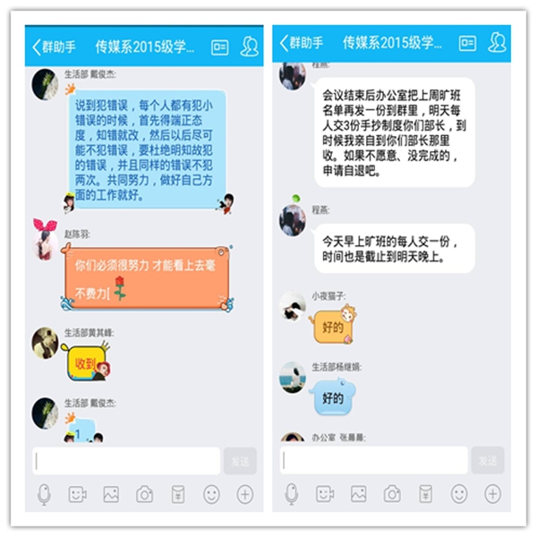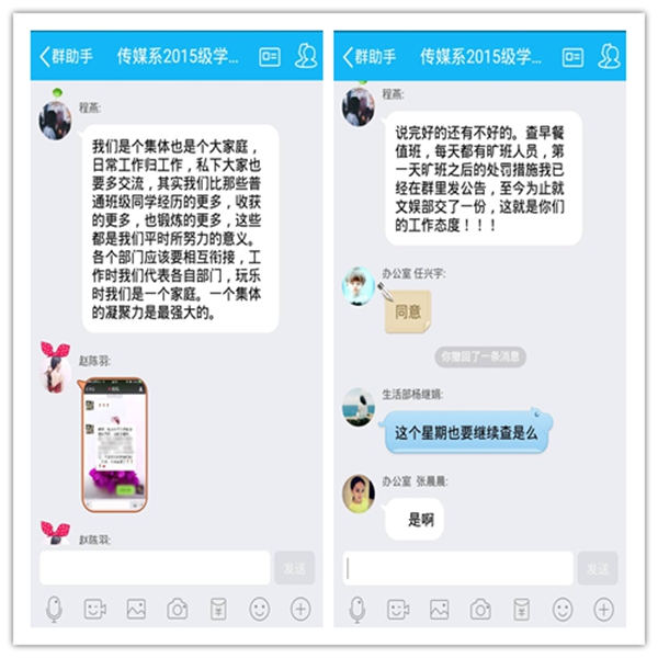 此次网络会议,完善了学生干部与学生之间的交互沟通,并且无论在何时何地,都能短时间内召集会议,解决了小事情开会的繁琐。