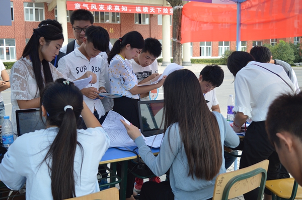 丹桂飘香,荷花满塘,又是一年迎新时。9月10日,学校迎新工作正式启动。9月9日到9月11日三天,传媒工程系积极的组织学生会工作人员准备迎新工作,一张张热情的笑脸,一句句亲切的问候,一项项贴心的服务,欢迎着来自各地的莘莘学子。