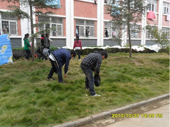 整洁舒适的校园生活是大学生健康成长的必备条件,保持校园环境卫生是每一名在校大学生义不容辞的责任。艺术系学生会生活部于10月27日中午召集学生会成员以及新生班委对艺术系保洁区进行彻底清扫。大家发扬不怕苦,不怕脏的精神,认真清理每一个卫生死角,此举得到很多同学的支持,一些路过的学生主动加入到清扫队伍当中,此次公益活动取得圆满成功。