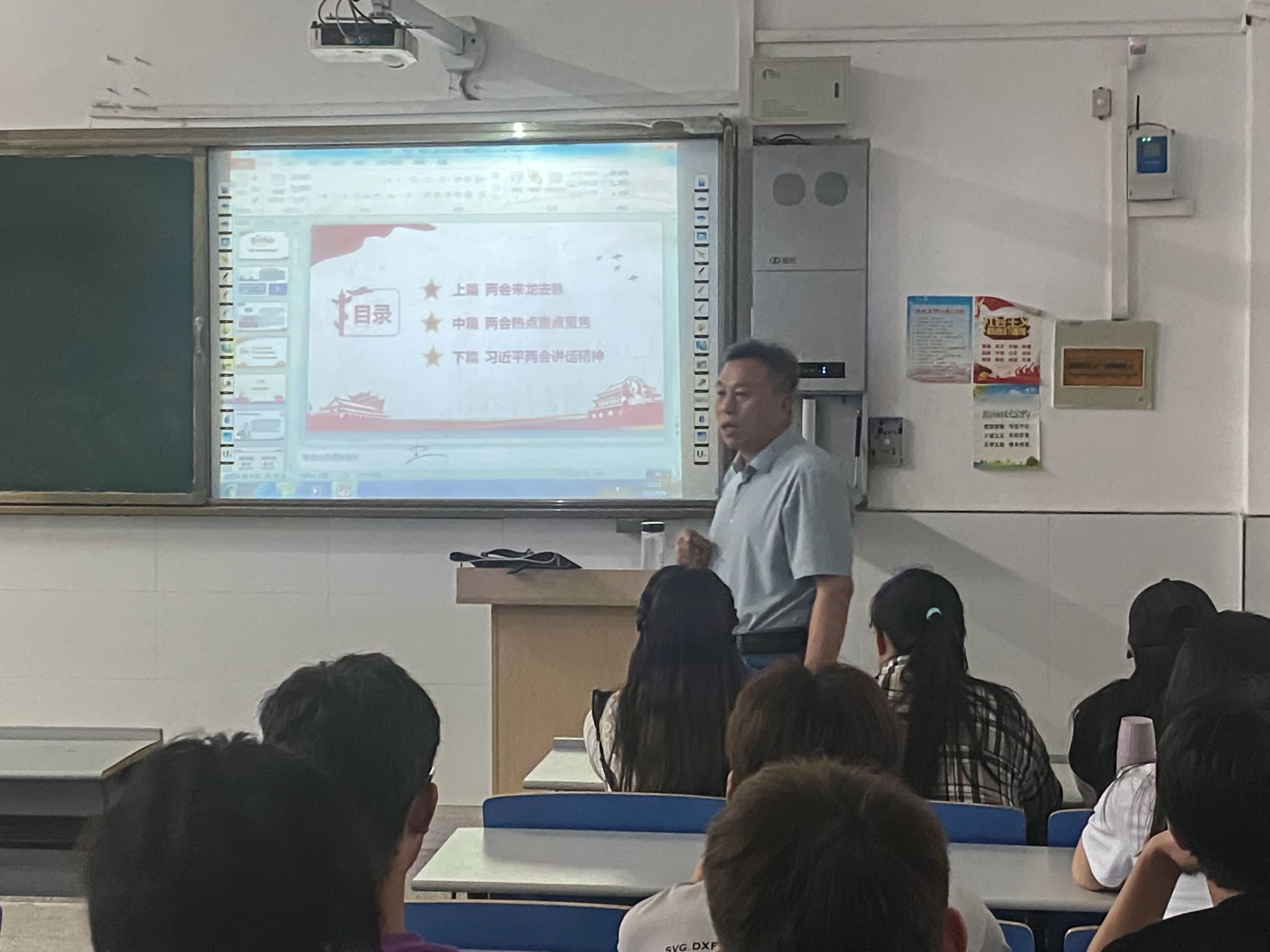课上,王广保从两会的来龙去脉、两会热点重点聚焦、习近平总书记两会重要讲话精神三个方面,向同学们详细解读了习近平总书记重要讲话精神、政府工作报告和全国人民代表大会常务委员会工作报告等内容。