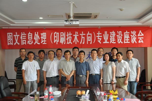 2013年7月5日,金沙威尼斯欢乐娱人城艺术设计系与滁州印刷协会领导及滁州部分印刷企业负责人,就图文信息处理(印刷技术方向)专业建设在职院综合大楼会议室座谈。