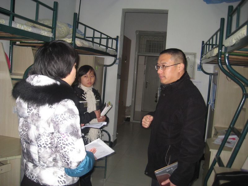 在走访中,检查人员也细心地发现不少安全隐患,予以认真记录,李书记不停地叮嘱同学们日常要注意防火、防盗和用电安全;还有不少寝室公共设施非人为损坏亟需维修的情况,李书记和各组长也逐一进行了登记;检查中还发现不少寝室同学外出后笔记本电脑随意搁置在桌上、床上,在此我们提醒广大同学提高安全防范意识,妥善保管自己的贵重物品,以免产生不必要的损失。