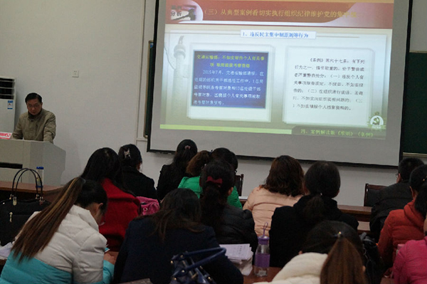 2015年12月2日下午,基础部在1231会议室举办学习贯彻《中国共产党廉洁自律准则》和《中国共产党纪律处分条例》专题理论宣讲。王冬主任作专题宣讲报告,基础部全体党员教师参加,报告会由系党总支副书记林文静主持。