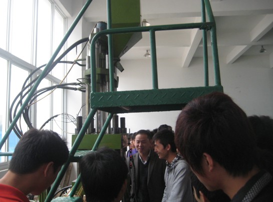 公司负责人热情的迎接了我院师生,公司的技术骨干罗总和姚工程师对照着公司内的设备诸如雕刻机、火花机、平面磨床,摇臂钻床、卧式注塑机和立式注塑机等的结构和工作过程为学生们做了详细认真的讲解,对于其中的一些设备还亲自做了加工的示范,并且指导学生对于设备的原理和操作方式等进行了深层次的认识。下图为姚工程师亲自指导学生操作注塑机来生产制品,学生可以亲手做出制品。