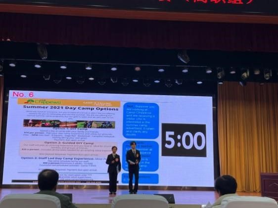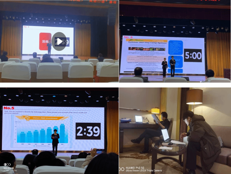 本次比赛分为三个环节:第一环节“中国故事”为学生比赛,现场抽取一个话题用英语进行演讲,讲述中国故事,介绍中华文化。第二环节“情景交流”为师生同赛,参赛学生和教师 2 人组队参赛,与外教主试官进行一对一的现场交流,交替回答问题。第三环节“职场描述”为学生比赛,现场抽取一幅反映行业、企业发展趋势或社会、经济等热点问题的统计图表或图片,对其进行口头描述和观点阐述。