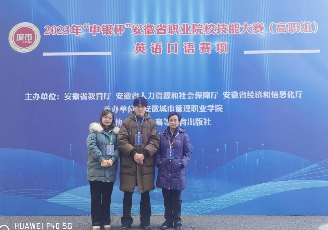2024年1月12日至14日,由安徽省教育厅、安徽省人力资源和社会保障厅、安徽省经济和信息化厅主办的2023年“中银杯”安徽省职业院校技能大赛“英语口语”赛项在安徽城市管理学院举办,来自全省各地的64名专业组和非专业组学生选手参赛。在基础教学部外语教研室郭敏老师指导下,金沙威尼斯官网21级无人机班张奥杰同学,以其扎实的语言功底、沉稳自信的舞台表现,在45名非专业组学生选手中脱颖而出,排名第四,获得一等奖,这将是金沙威尼斯官网学生首次在安徽省职业院校技能大赛“英语口语”赛项中荣获一等奖。
