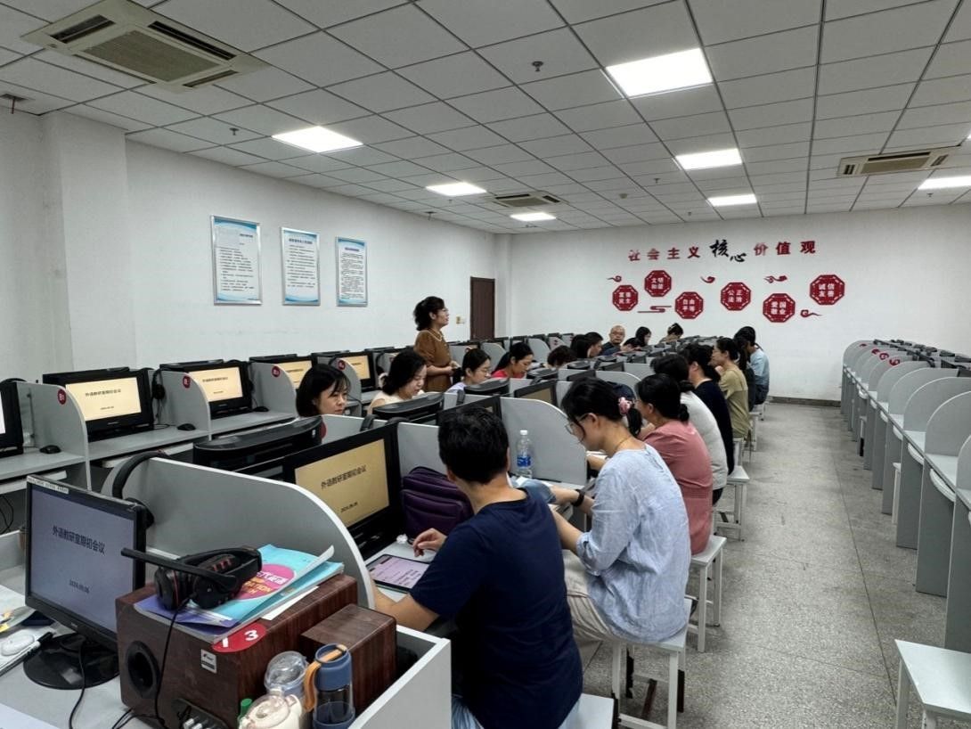 郭敏老师和胡燕萍老师分享了暑期培训心得。郭敏老师结合讲座内容,分享了外语改革新实践,课程思政的内涵及实施,人工智能时代教师角色的转型,以及口语大赛的备赛经验。胡燕萍老师分享了人工智能在职业教育教学全过程中的应用,倡导利用人工智能赋能教师职业发展,助力学校专业建设。最后,教研室全体教师学习了新建语音室的教学系统操作。