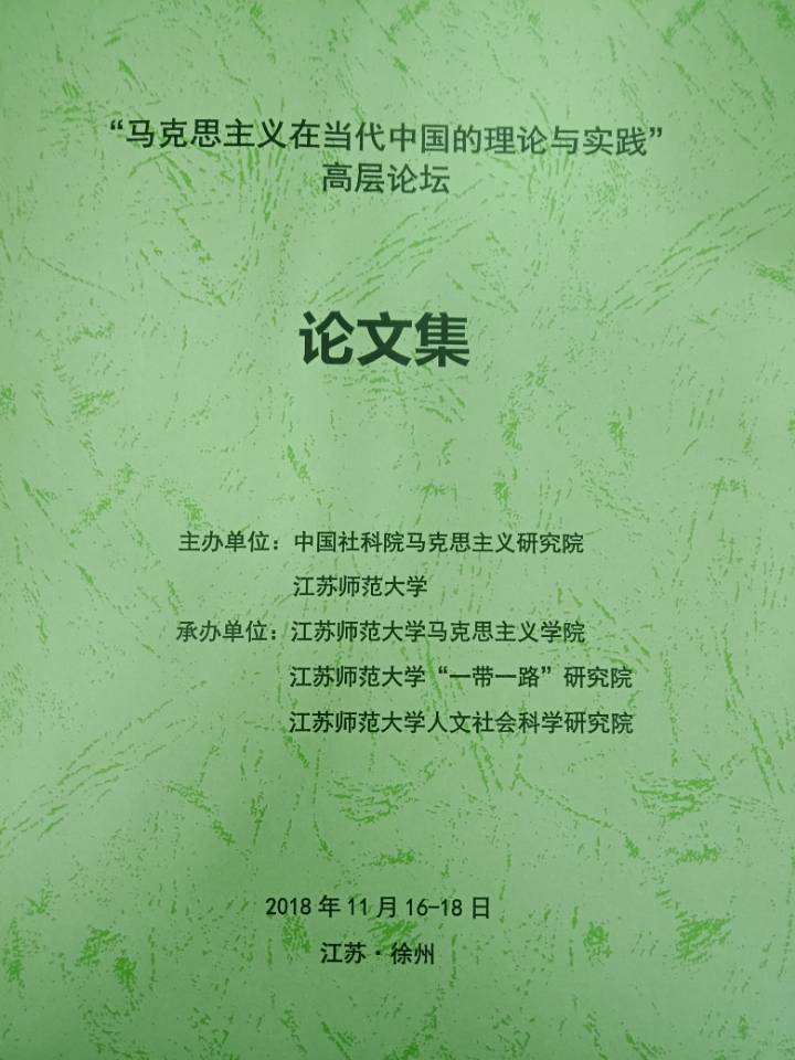 11月17日至18日,“马克思主义在当代中国的理论与实践”高层论坛在徐州召开,该论坛是由中国社会科学院马克思主义研究院和江苏师范大学共同主办,由中国社会科学院马克思主义研究院马克思主义发展研究部、江苏师范大学马克思主义学院、“一带一路”研究院、人文社会科学研究院承办。这次论坛是为纪念马克思诞辰200周年、中国改革开放40周年,贯彻落实十九大精神,推动马克思主义理论创新发展和马克思主义理论学科建设,切实增强“四个自信”而召开的。来自中国社科院、复旦大学、浙江大学、山西大学、南开大学、东南大学、南师大、中科大、山东大学、厦门大学等高校,《马克思主义研究》《人民日报》等媒体单位的100多位专家学者参加论坛。金沙威尼斯官网思政部副主任孔金副教授和吴成达老师应邀参会,是唯一一所高职院校的代表。