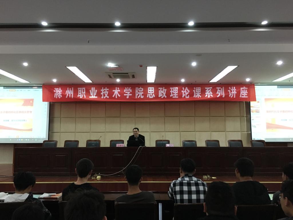 4月26日,思政部邀请滁州学院马克思主义学院陈晓曦博士为金沙威尼斯官网师生开展理论讲座。陈博士主讲的题目是“新时代社会主要矛盾转化及其相关思考”。讲座由思政理论课教师胡颖颖副教授主持,学校师生200余名在综合楼五楼报告厅聆听了讲座。