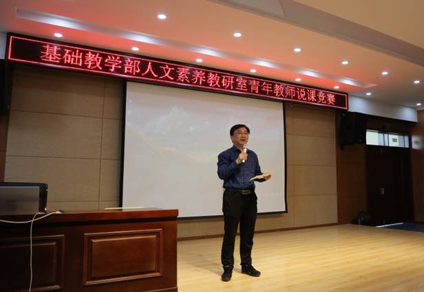 本次比赛由基础教学部人文素养教研室组织实施,旨在通过说课竞赛,引导青年教师树立“以学生为中心”的理念,强化教学设计,不断提高课堂教学质量和课程建设水平,提升教师的课程分析能力和课程整体设计能力,达到以赛促学、以赛促教的目的。