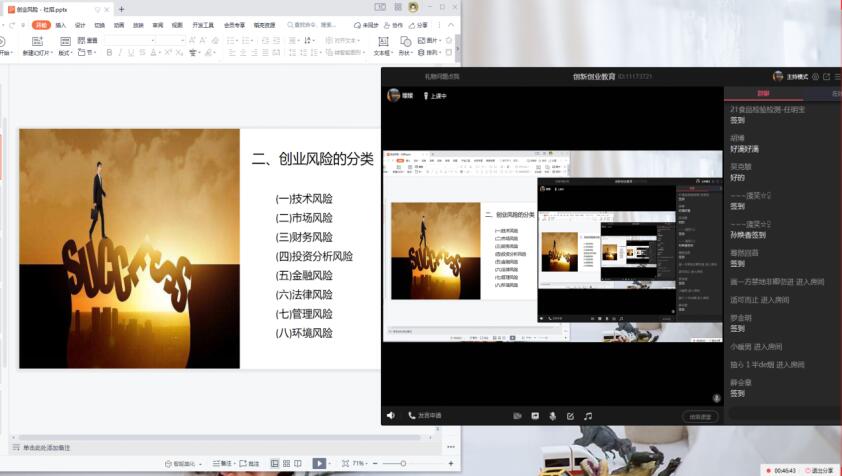 考虑到社招学生是一个相对特殊的群体,为保证教学内容的整体性和连贯性,同时兼顾进阶性和实用性,经教研室反复讨论研究,本次授课内容围绕“创业风险”展开。授课教师在课前进行认真备课,提前做好各项教学准备工作。