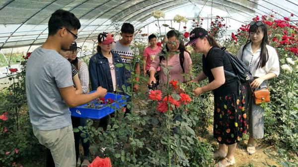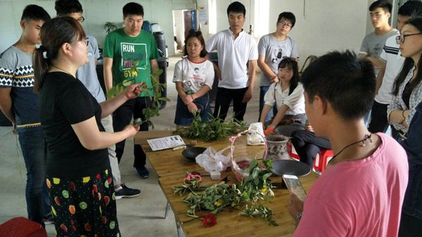 在海威工贸公司,通过参观学习以及技术人员的讲解,同学们了解了桑果的品种及种植技术、切花玫瑰的生产技术等。最后,在老师的组织下,同学们参加了现场插花教学活动。