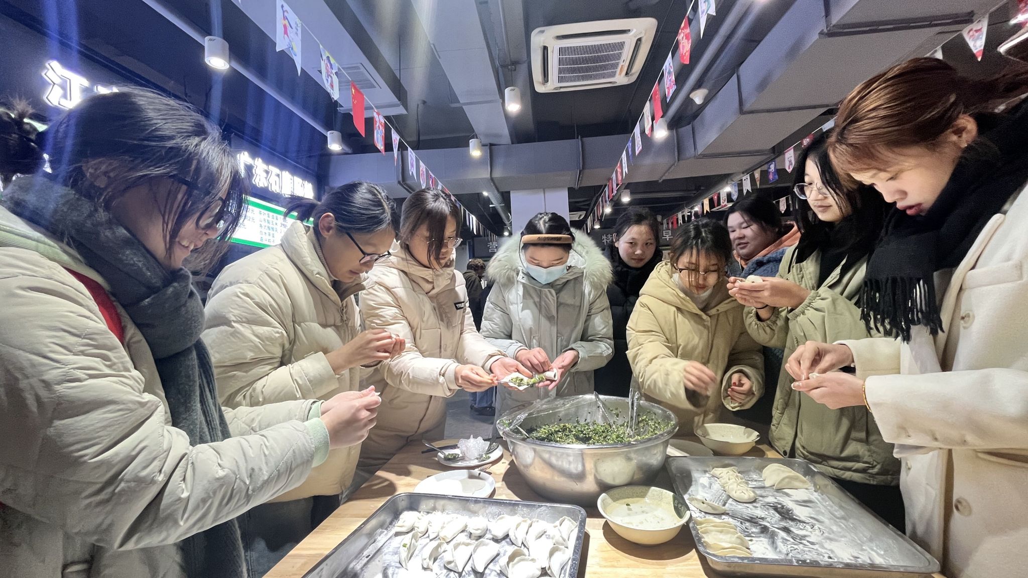 为进一步弘扬中华优秀传统文化,12月22日,食环学院团总支、辅导员老师组织22级化工2班学生在学校美食城二楼开展冬至日包饺子的活动。