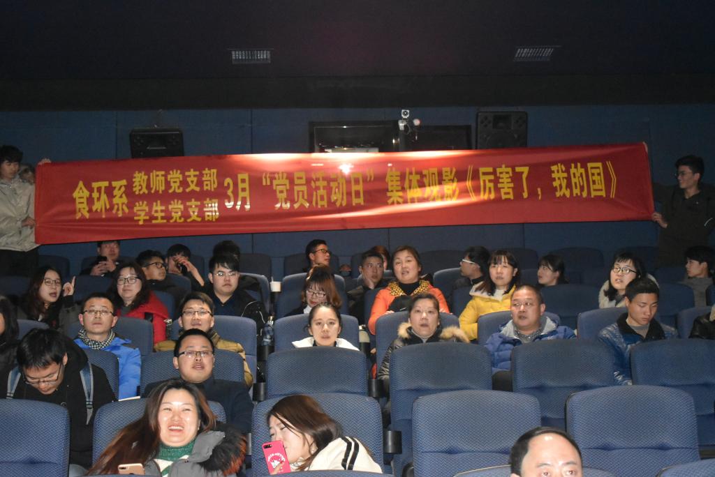 3月7日下午,食环系组织党员、入党积极分子集体观看大型新闻纪录影片《厉害了,我的国》,感受祖国的伟大与富强,为新学期工作提振士气、凝心聚力。