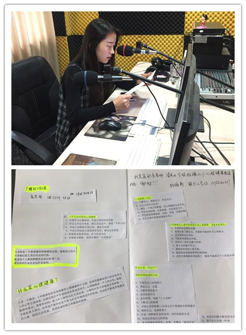 5月21日,我系负责学生心理教育与咨询工作的辅导员杨海燕利用学院广播站晚间校园广播对学生进行心理健康教育。广播员们优美动听的播报让同学们了解心理健康知识,增强同学们对心理健康的认识和感悟,引导学生们关注自已的心理健康。