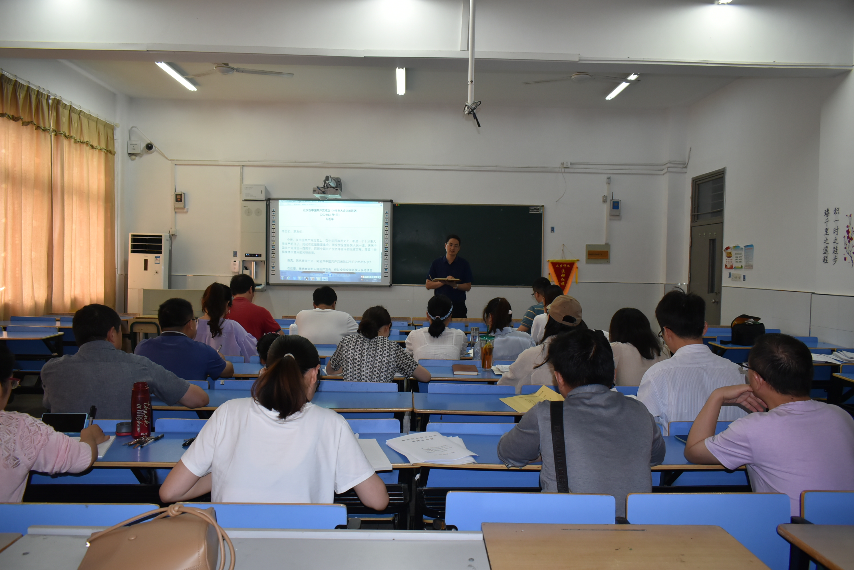 7月7日下午,食环学院召开全体教职工大会,学习习近平总书记在庆祝中国共产党成立100周年大会上的重要讲话。会议由学院党总支副书记张功会主持,组织委员周玲玲带领全体教职工全文学习习近平总书记“七一”重要讲话。