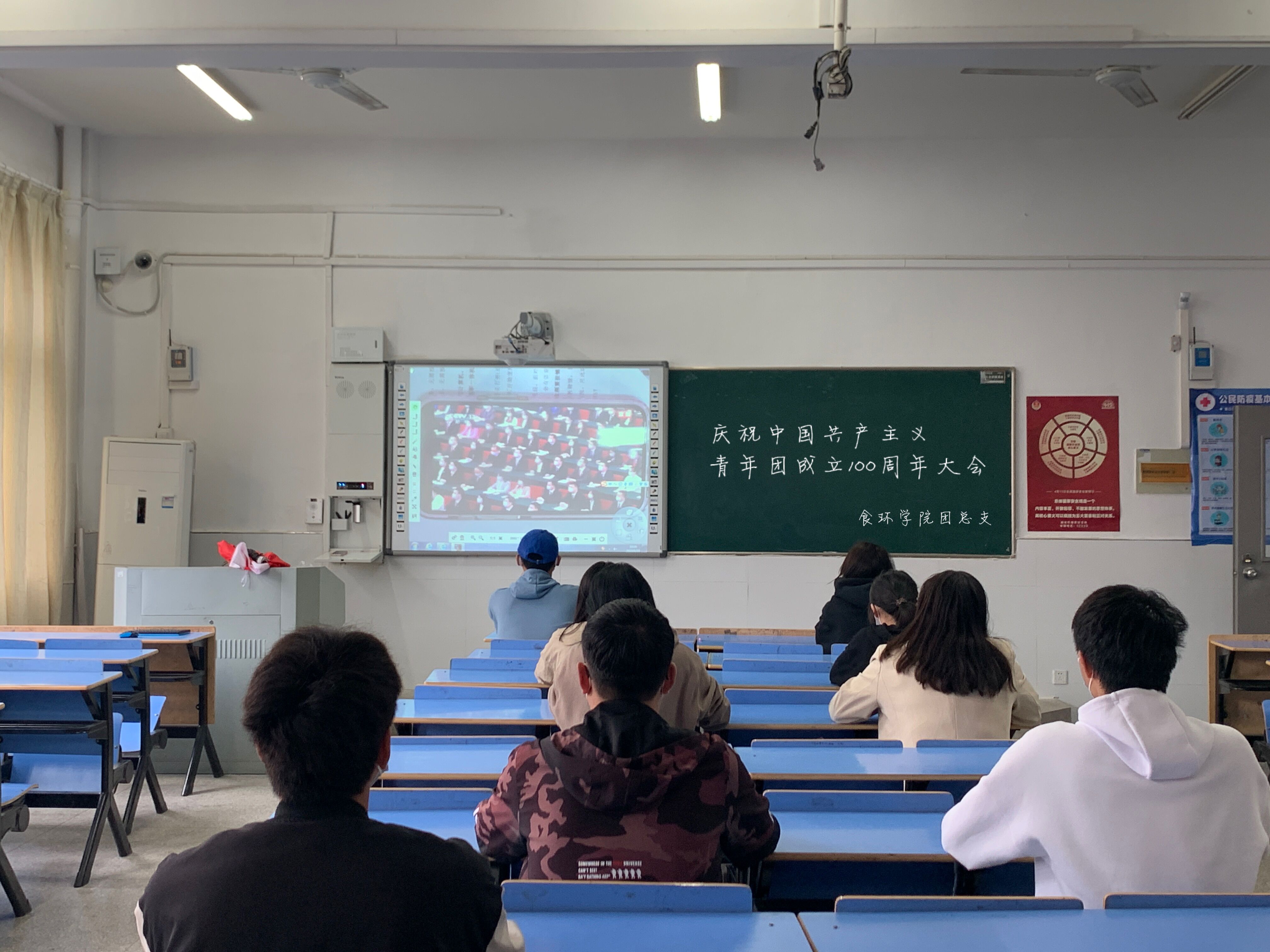 2022年5月10日上午,庆祝中国共产主义青年团成立100周年大会在人民大会堂举行,中共中央总书记、国家主席、中央军委主席习近平出席大会并发表重要讲话,食环学院团总支组织团员青年代表在致善楼2304教室集中收看直播。