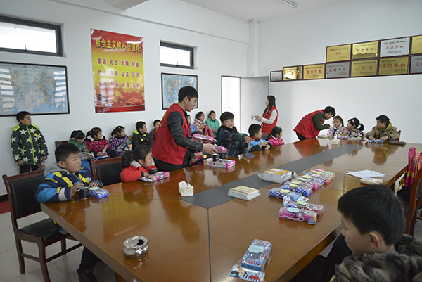 2015年12月25日,金沙威尼斯欢乐娱人城汽车系的青年志愿者们在团总支朱婷婷老师的带领下来到了第四小学,这是我们第二次来到了这里,前期我们志愿者给23名贫困儿童带来了零食和一些心愿贴,了解了这些孩子们的微心愿,回校后汽车系的志愿者们纷纷来领取并帮助23名学生完成心愿,今天他们带着小朋友们满满的心愿礼物再次来到这里。
