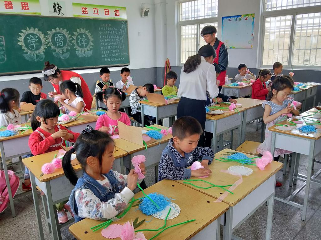 文明根源于大众,启发于自觉,先行于先知。汽车系的志愿者们一直致力于此,近日他们又用力于在加强对留守儿童的关爱,旨在增强大家对尊老爱幼的传承,对关爱社会弱小的唤醒。2018年5月10日下午,他们再次来到汪郢小学,为汪郢小学的留守儿童带来了手工,为即将带来的母亲节准备一份特别的礼物,本次活动共有34名留守儿童参加,大家一起制作了康乃馨、盆栽、心愿卡片等。